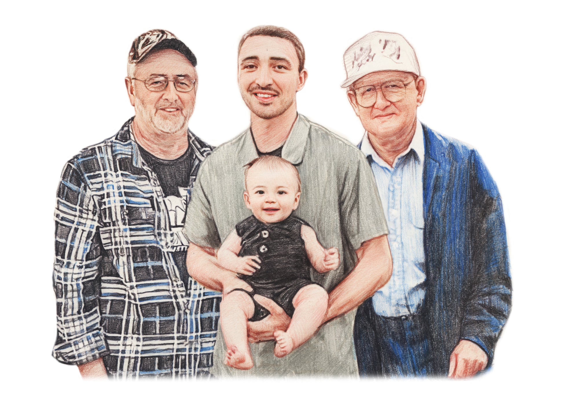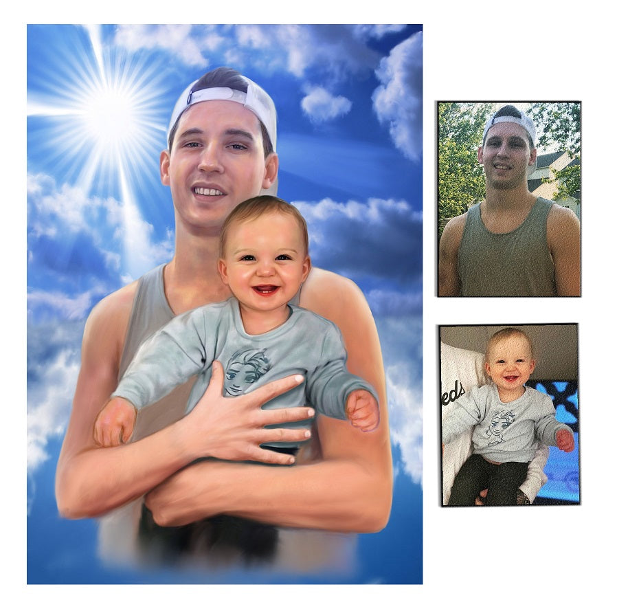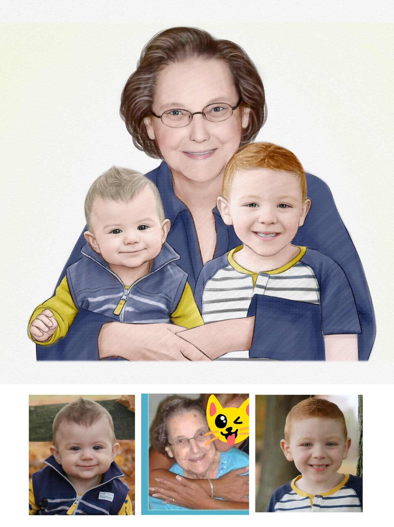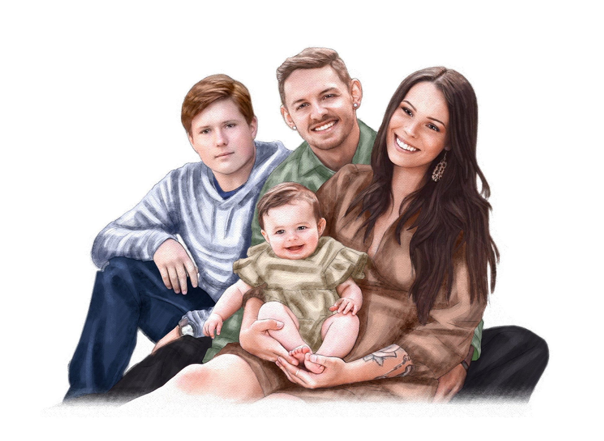 Our color portraits are our most popular style — vibrant, full of life, and a perfect addition to any room. Whether it's a gift for someone special or a piece for your own home, a color portrait brings out the personality and warmth of the people (or things!) you love.